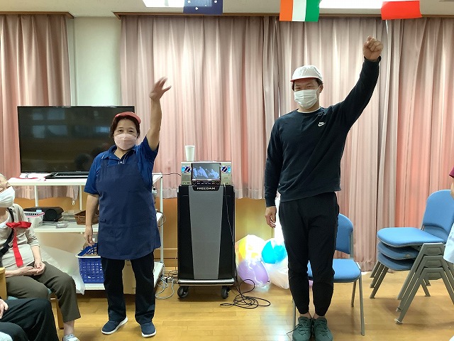 今週は実習生が来ています。今年は実習生に白組キャプテンを務めていただきました😄頑張るぞー!えいえいおー💪