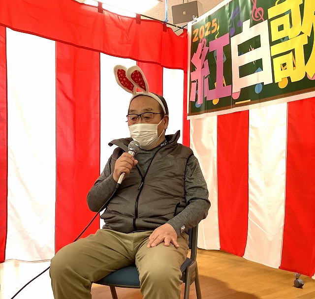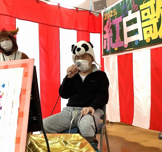 まず、みんなで発声練習❗️『赤鼻のトナカイ』を歌い、紅白歌合戦スタート✨