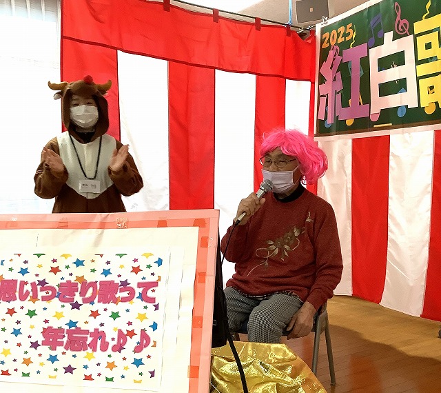 街中に音楽が流れていますね😄私も今日はサンタさんです🤶ケアセンターでは、毎年恒例の紅白歌合戦を行いました🎤