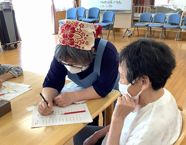 午前の入浴を待つ間、ご利用者さんには計算ドリル、塗絵などをた~くさん用意しています。頭の体操に役立てていただければ幸いです。